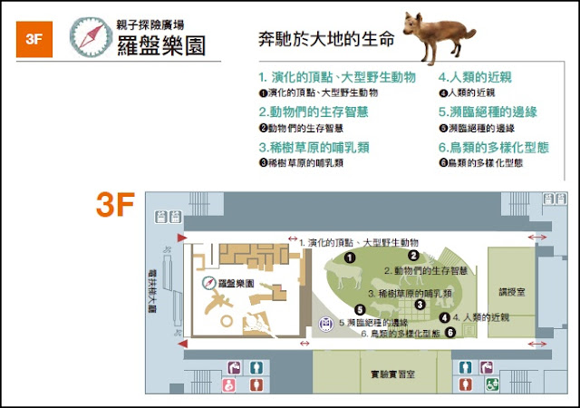 一踏入這層,映入眼中的是大量的動物…標本,用來介紹我們居住的地球上的各種生命,另外本層的羅盤樂園,基本上就是兒童遊樂區。本層的主題如下: